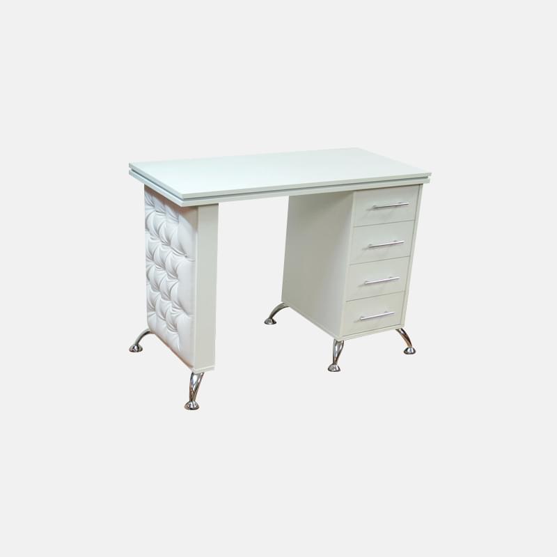 Стильный и минималистичный маникюрный стол «Рэффэел» выполнен с учетом современных тенденций. Здесь нет излишних декоративных элементов. Вместо этого упор взят на практичность. К примеру, вы получаете большую удобную столешницу и вместительную тумбу с четырьмя выдвижными ящиками.