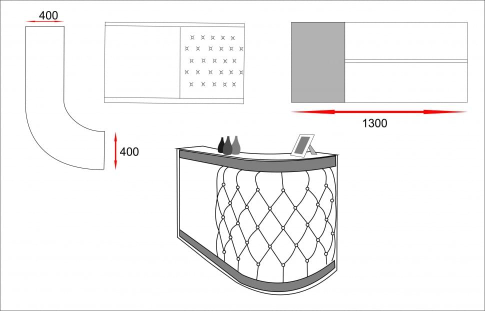 Рабочая зона: Полка для кассового аппарата, рабочая поверхность.