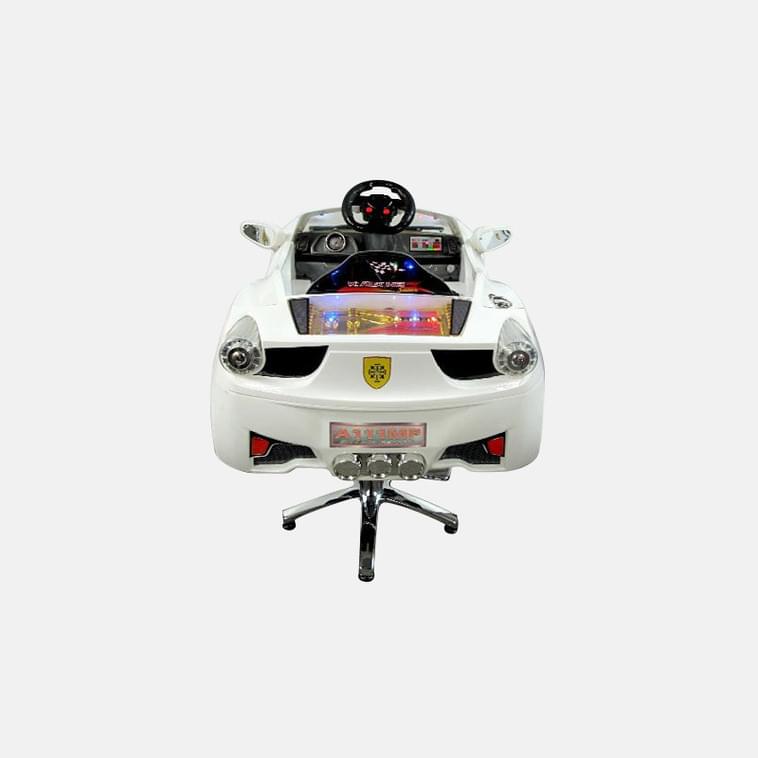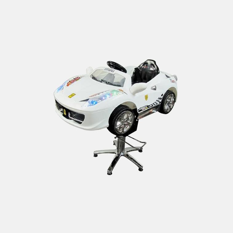 Детское парикмахерское кресло Авто Кабрио. Цвет белый. На гидравлике. Электромобиль питается от 6 v аккумуляторной батареи. Машинка оснащена светящимися фарами, сигналами, музыкой и ремнем безопасности.