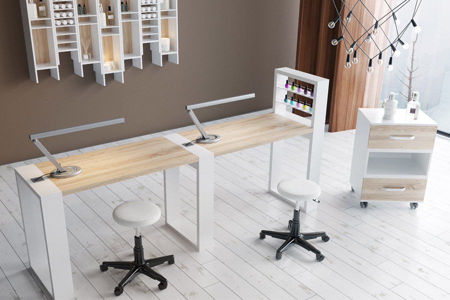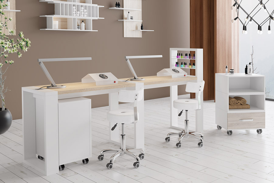 Двухместный маникюрный стол "Matrix" предназначен для одновременной работы двух мастеров.