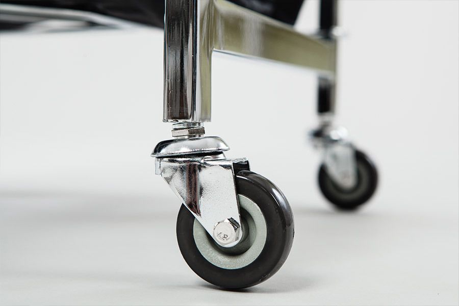 Основа - хромированный каркас на четырех колесах.
