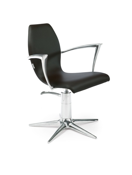 Кресло для клиента комплектуется металлическим основанием. Кресло оснащено металлическими подлокотниками.