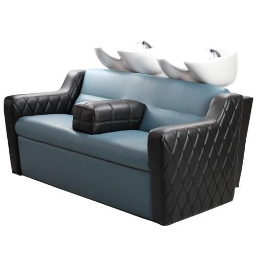 Парикмахерский комплект «Rossi» включает в себя восемь предметов: два дивана для холла, две двойных и две одинарных парикмахерских мойки и два парикмахерских кресла. В дизайне используется три основных цвета: глубокий голубой, светло-серый и черный. Обивка изготовлена из искусственной кожей, для придания фактуры применяется декоративная стяжка.