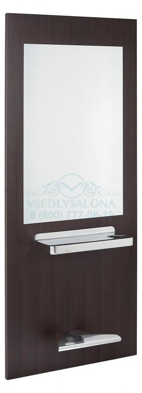 Зеркало парикмахерское, одностороннее, крепление к стене. Выполнено из ламинированного ДСП, Комплектуется хромированной столешницей и навесной подставкой под ноги.Цвет - венге. Размер (ДхШхВ): 85х30х210